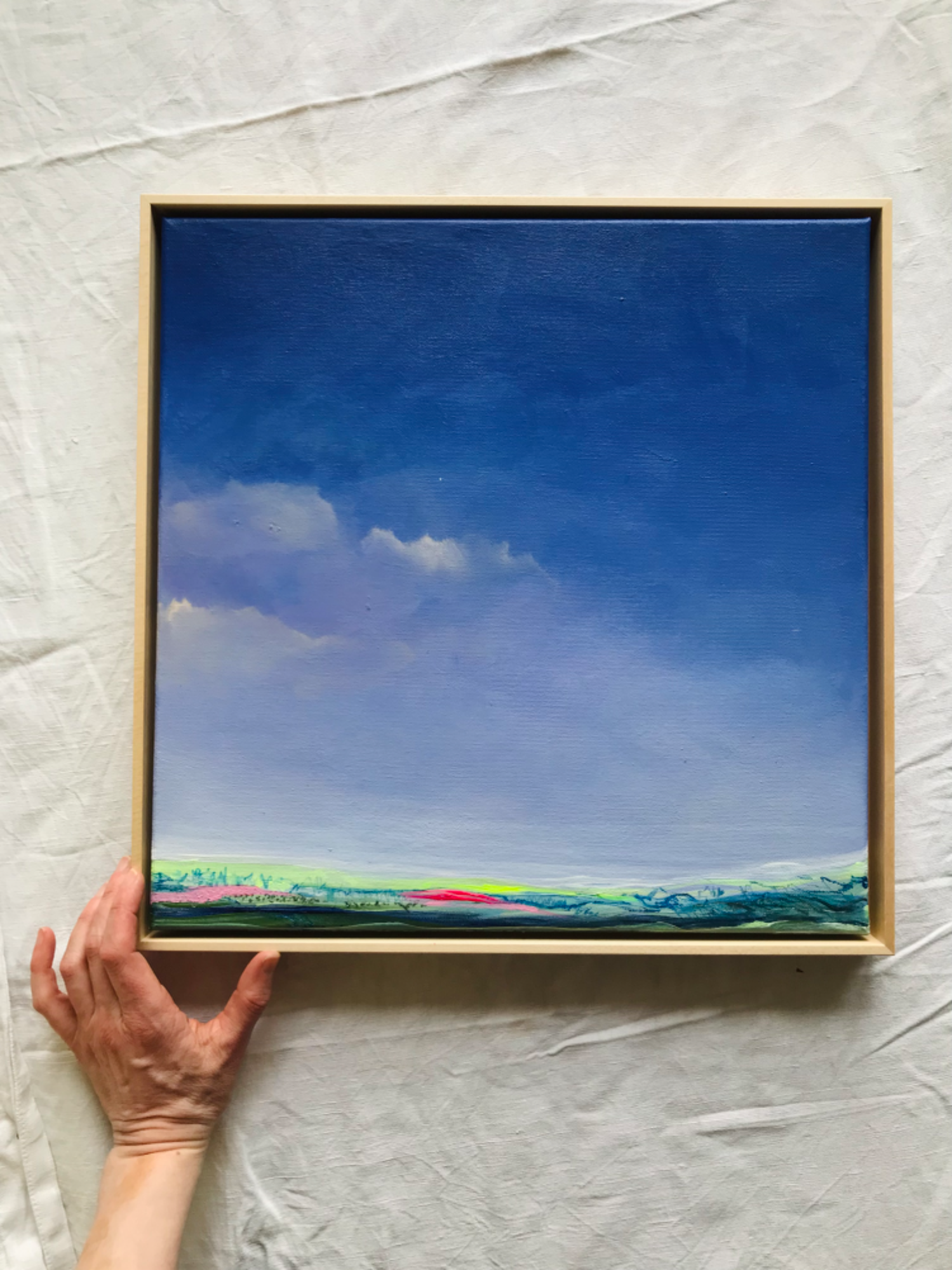 Die angegebenen Maße beziehen sich auf die Leinwand. Je nach Rahmen können zusätzlich etwa 0,8 bis 1,2 cm dazu kommen.